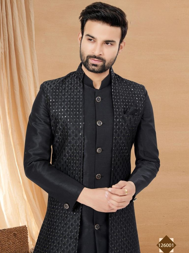 • Black Wedding Wear Heavy Art Silk Embroidery Indo western
