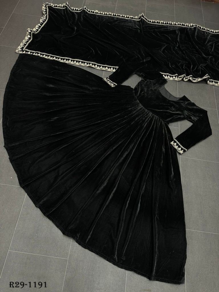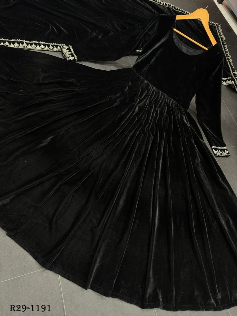 SuitFabric. :-Velvet with innerWork :-Thred with Sequnce workWeight :-1.5 KgSize :-M(38),L(40),XL(42)DupattaFabric. :-VelvetWork :-Thred with Sequnce workSize :-2.2M