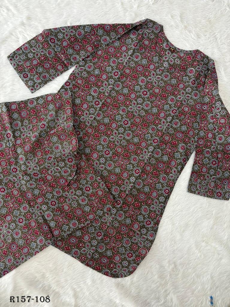 • Bottle Green Flower Printed Cotton Top And Pant Co ord Set