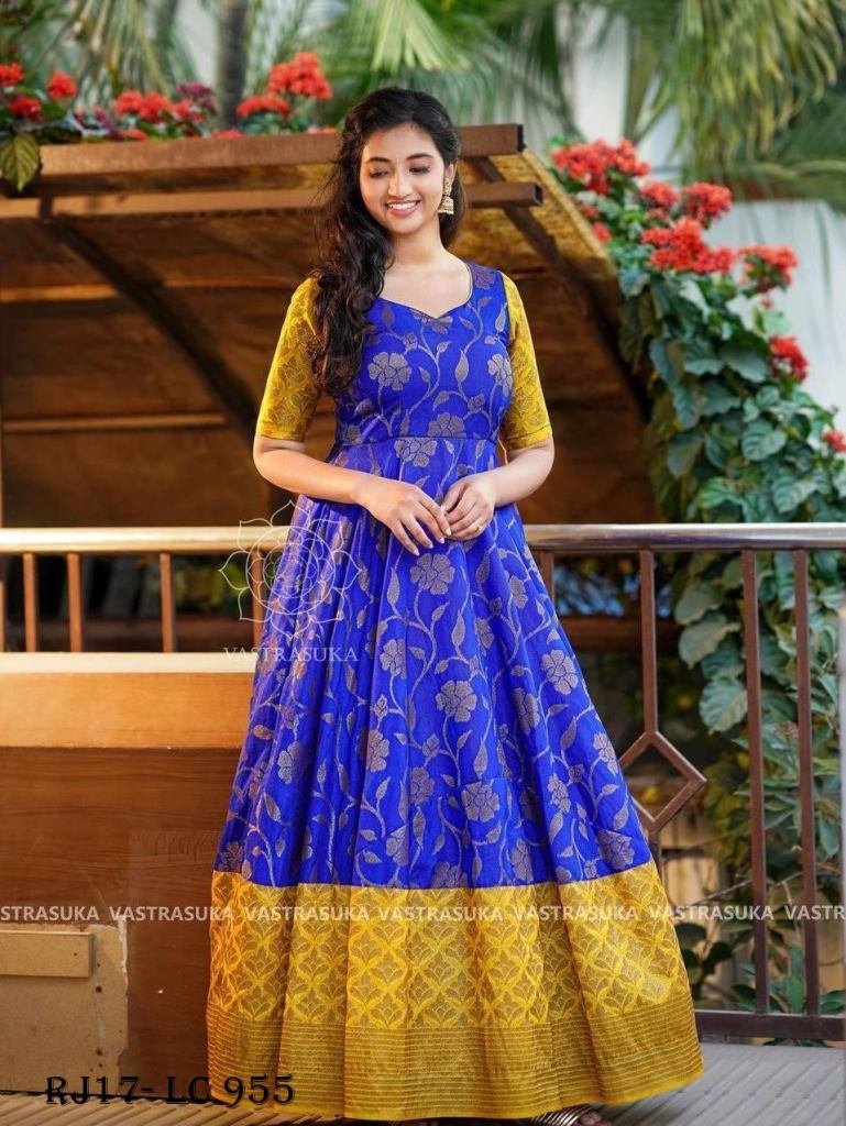 Gown :heavy Zari Silk With Digital Print (Fully Stitched) 4 Mtr Flair