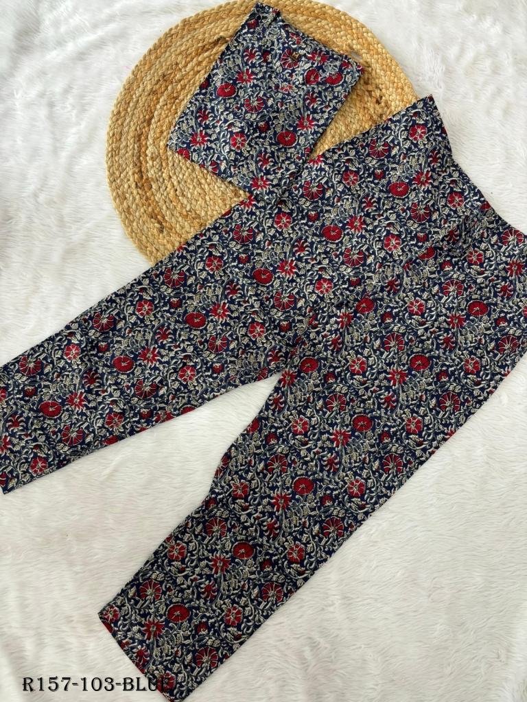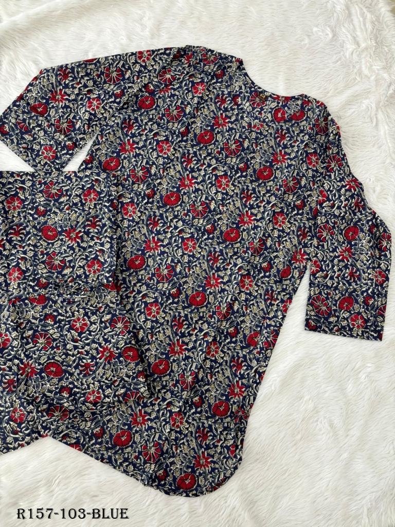 TOP(Stitched)TOP Fabric : COTTONCHEST SIZE :- L:-43”. Xl:-44” xxl:-45” 3xl :- 46”Top Length:- 33”Sleeve length:- 18”Bottom style :- PANTBottom fabric :-CottonPant length:- 40”Bottom waist :- 50”