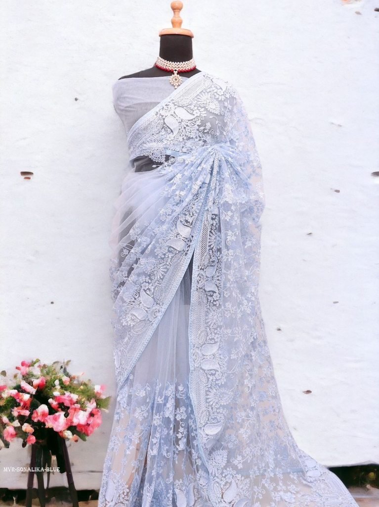 Premium Soft silver Net saree || sonalika !!