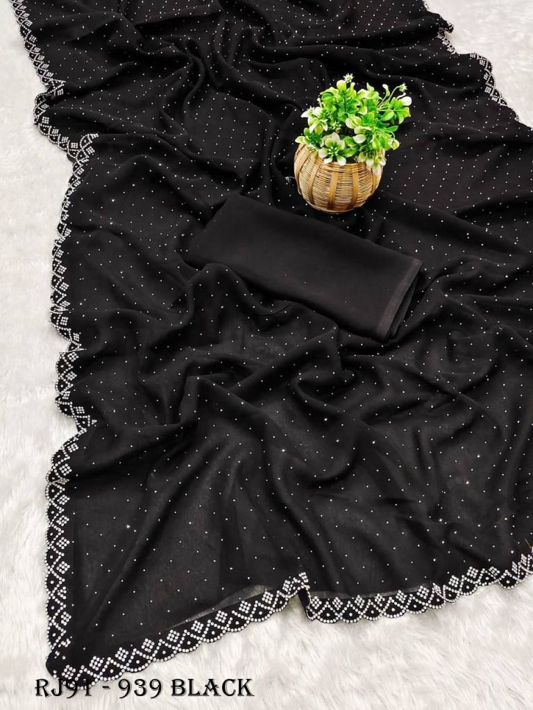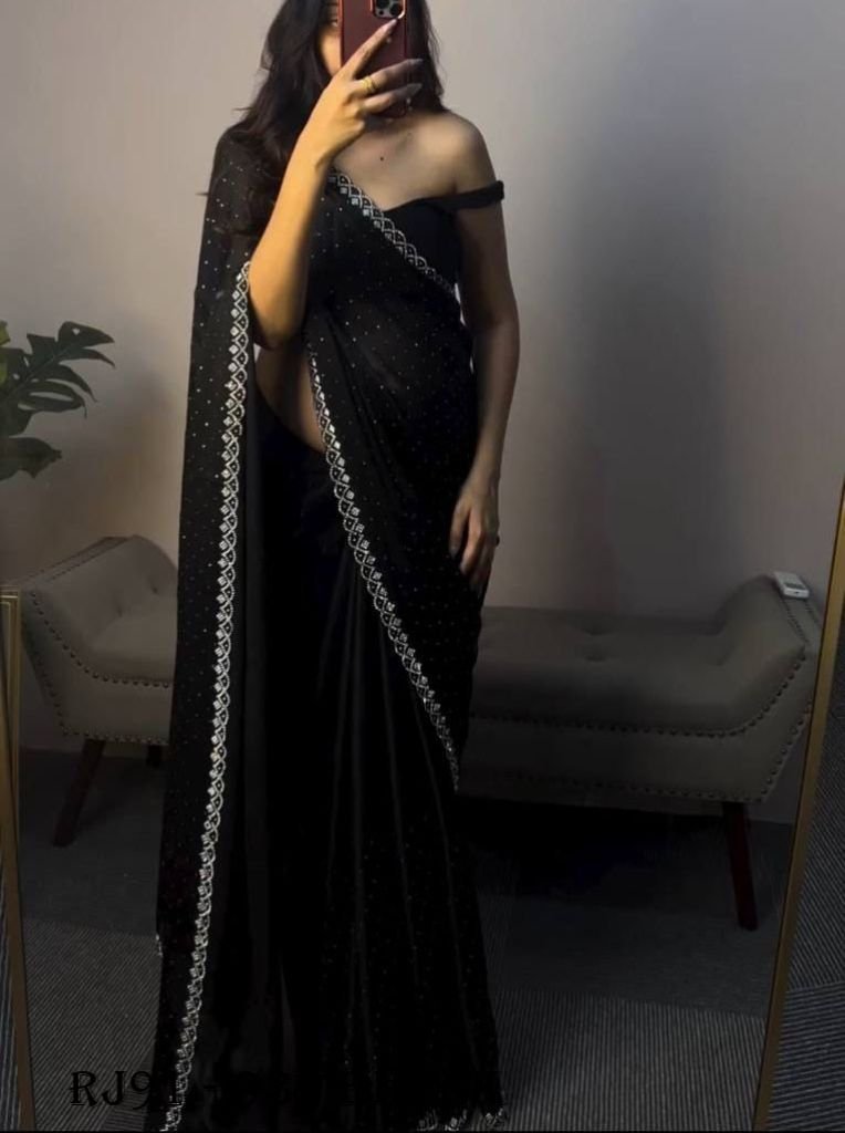 Georgette Swarovski Saree With Mono Chrome Blouse crafted with love