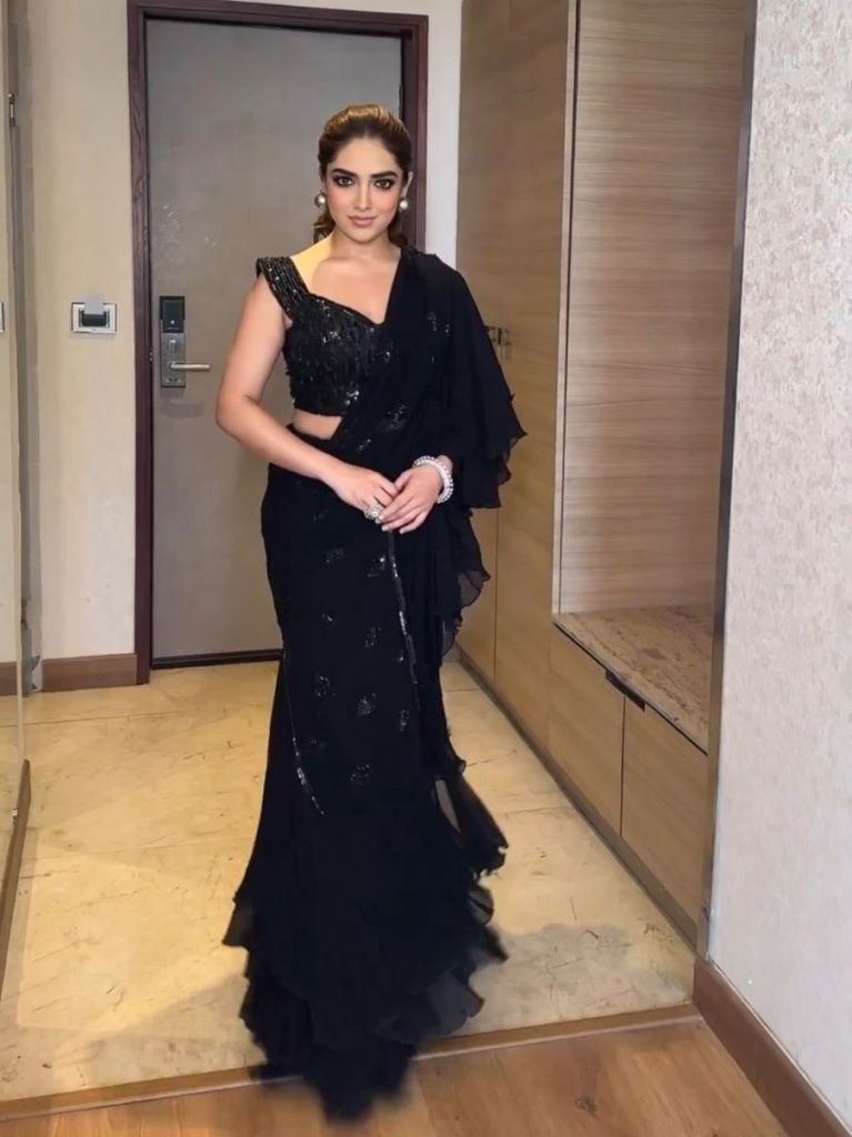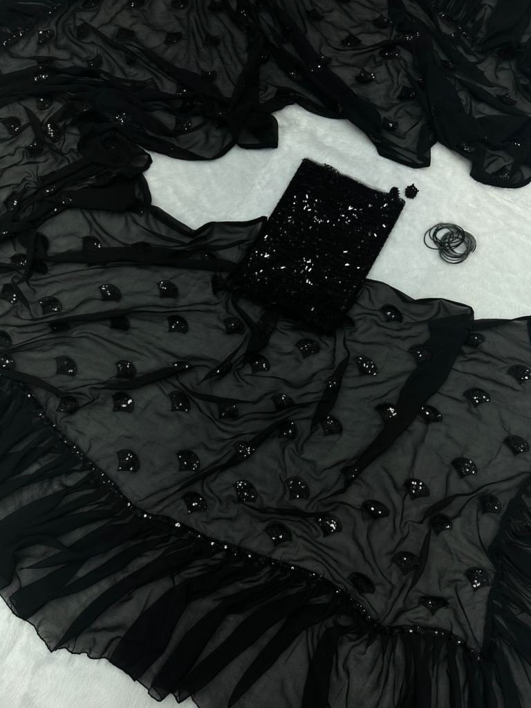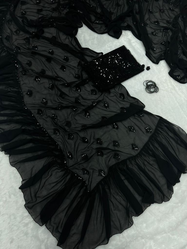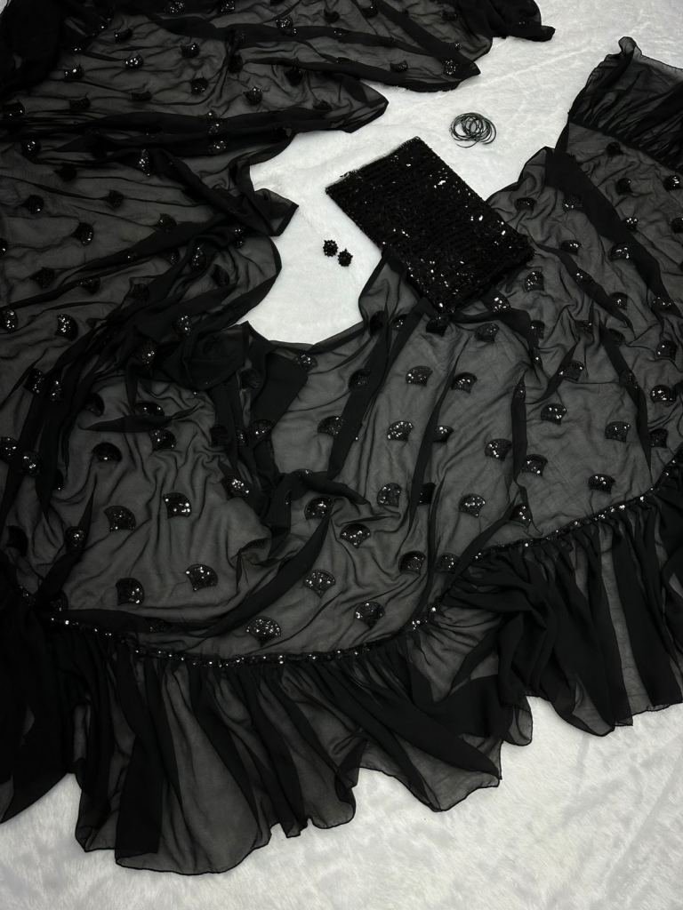 Saree - pure Georgette fabric with Sequins work ruffle saree