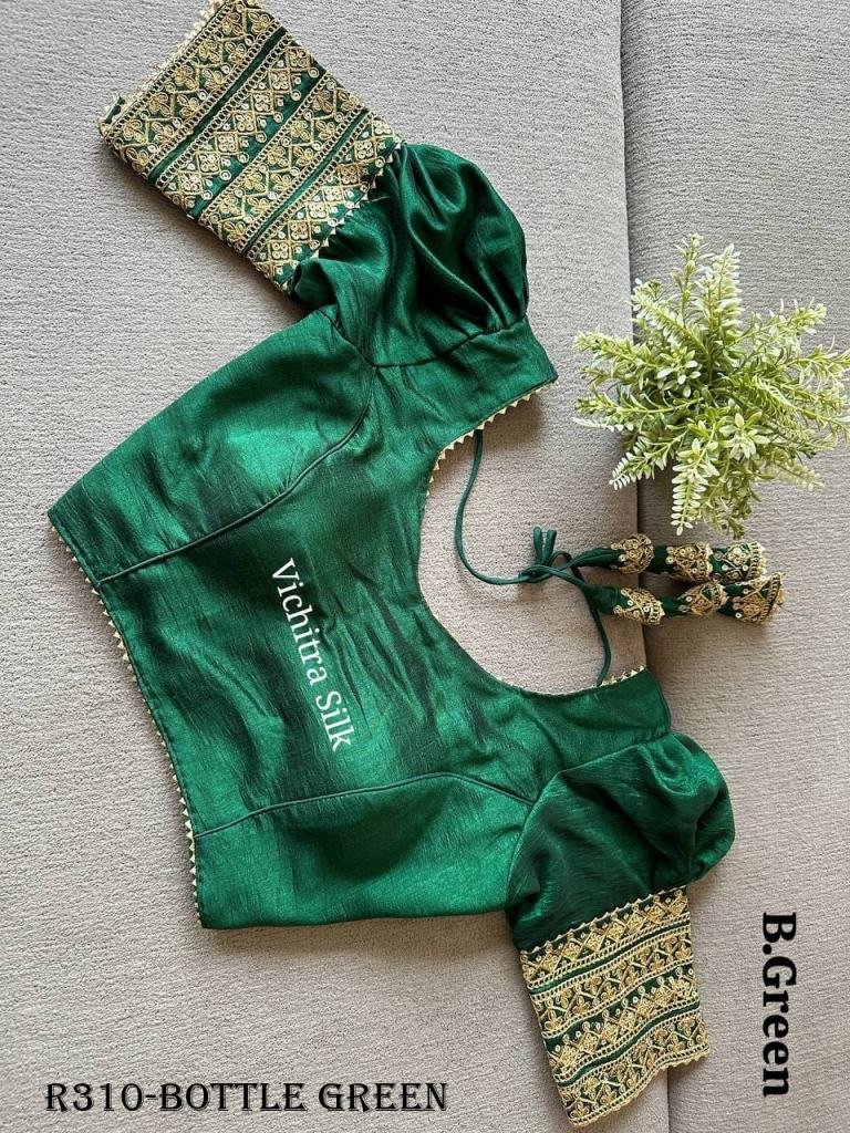 Bottle Green Readymade Vichitra Silk Blouse With Puff And Gota Less