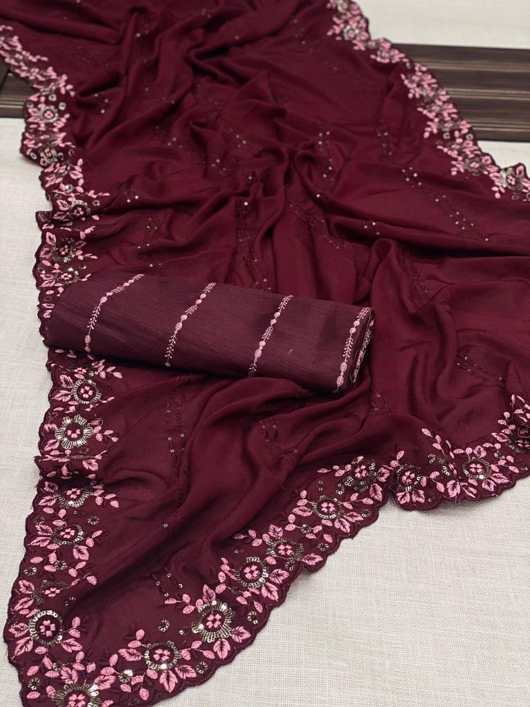Saree :- Chinnon SilkBlouse :- Mono Banglori SilkWork :- Embroidery Saree Length :- 5.5Blouse Length :- 0.8