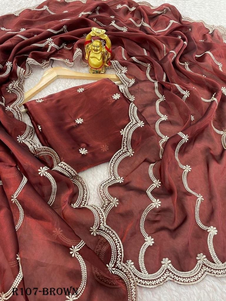 Brown Party Wear Pure Soft Zimmy Choo Chiffon Saree