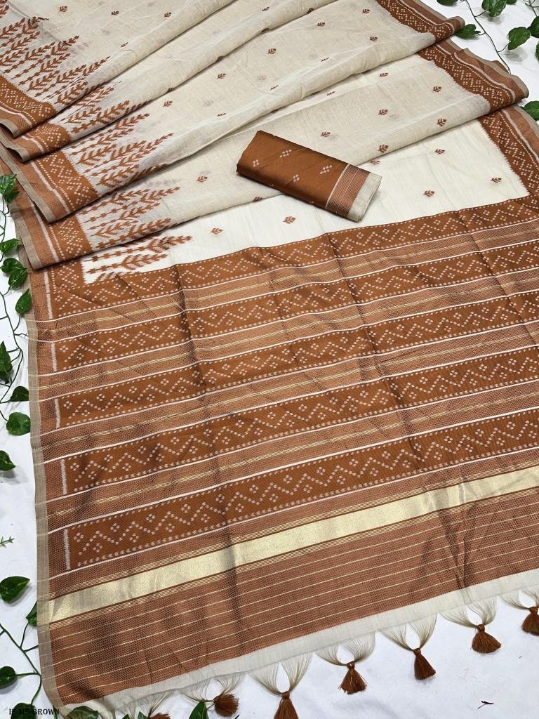 • Coffe Soft Muga Silk Saree With Tassels