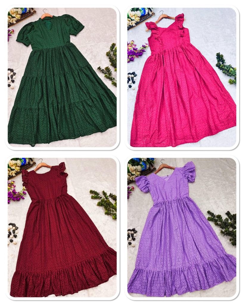 Fabric :- HakobaDress :- Western DressWork :- SchiffliLength :- 52