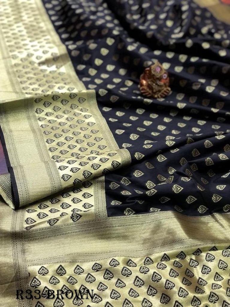 Fabric :- Pure Banarasi SilkZari :- Gold ZariSaree Length :- 5.5Blouse Length :- 0.8