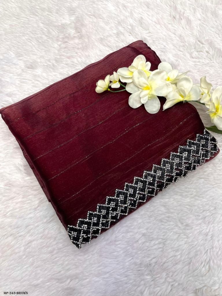 Brown Zimmy Choo Burberry Sequence Silk Saree