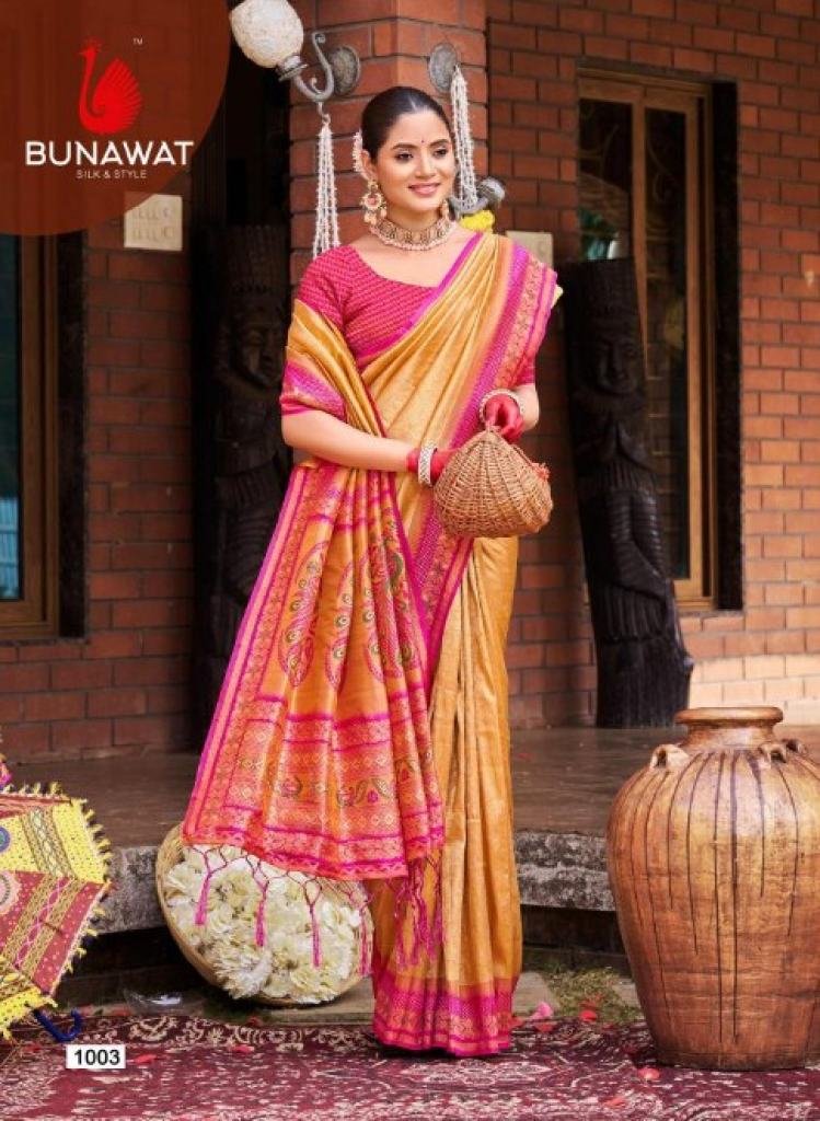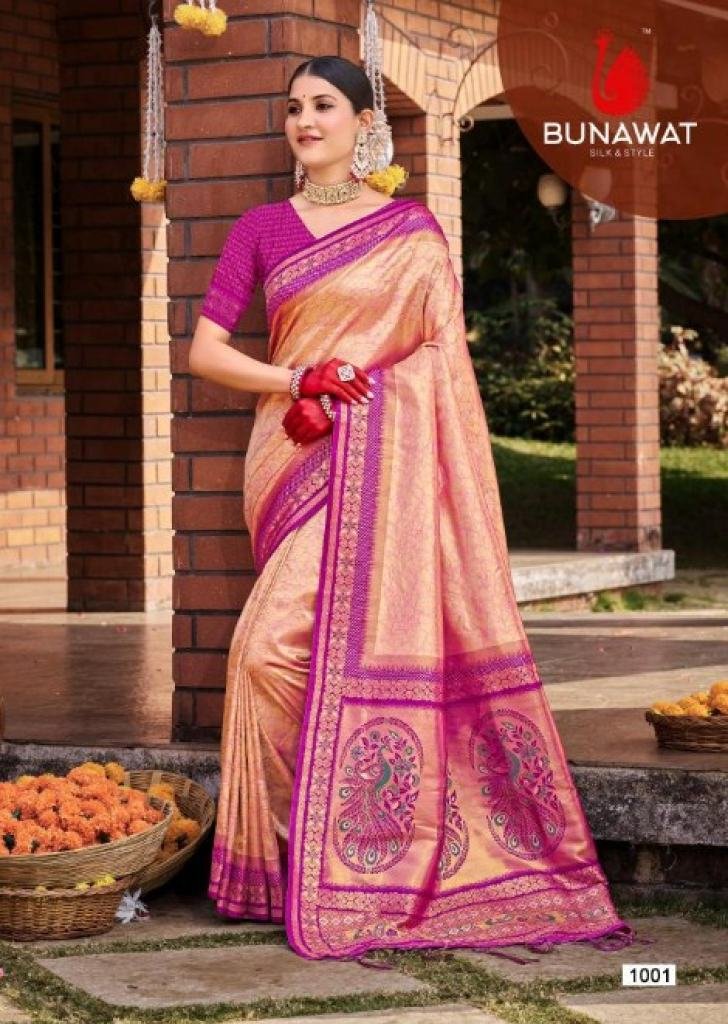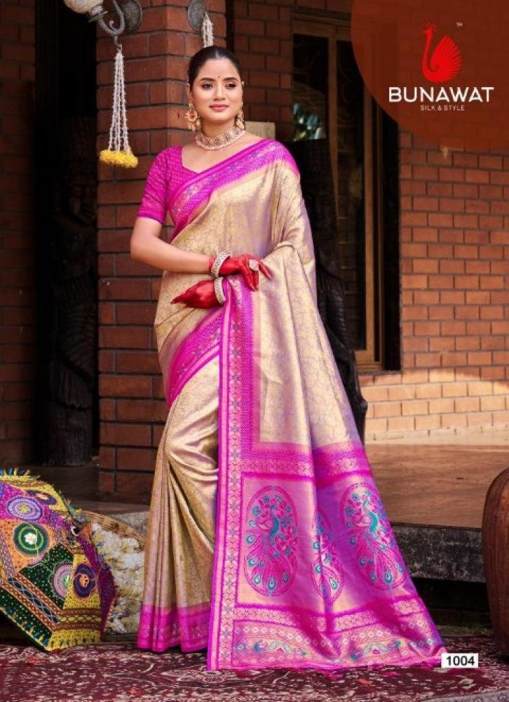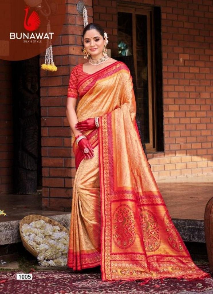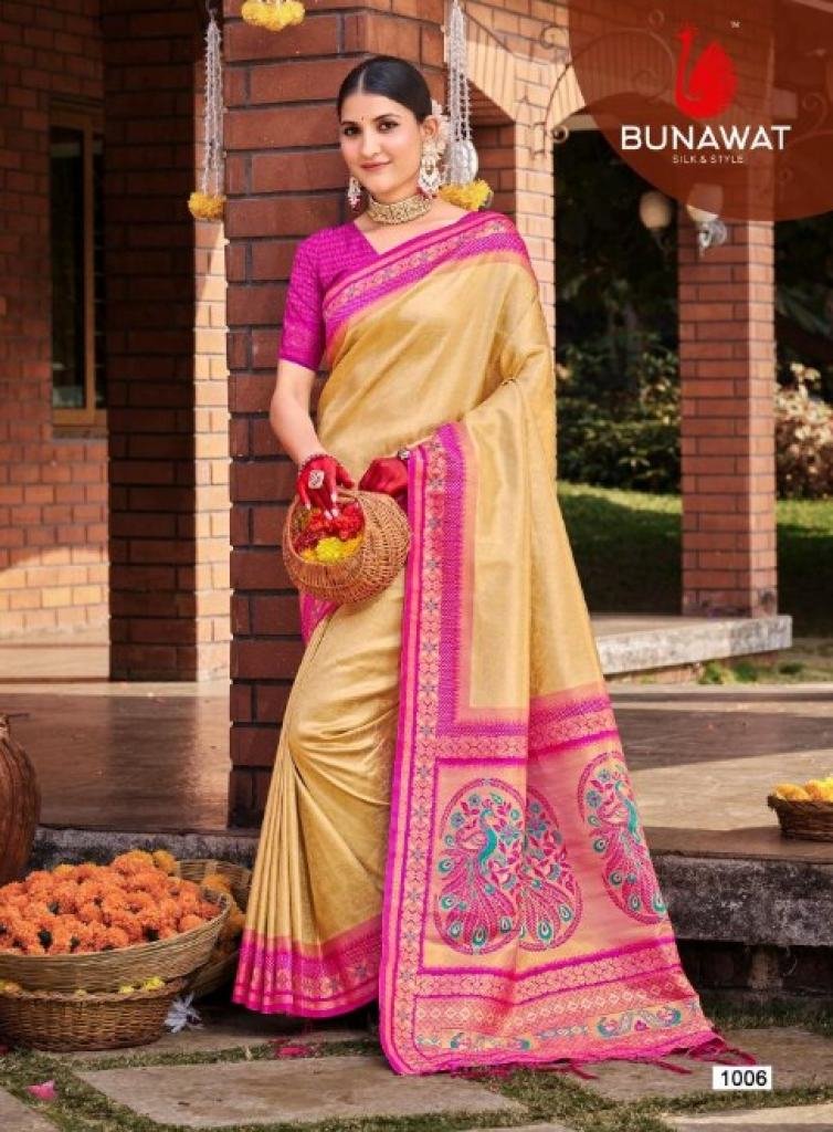 Brand: BUNAWATProduct Type: SilkFabric: SilkOther Specifications: SilkSaree Mtr: 5.5 MtrBlouse: 0.8 MtrTotal Pcs: 6