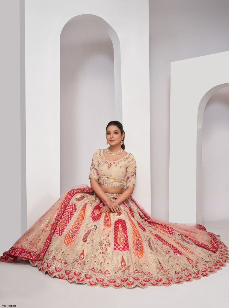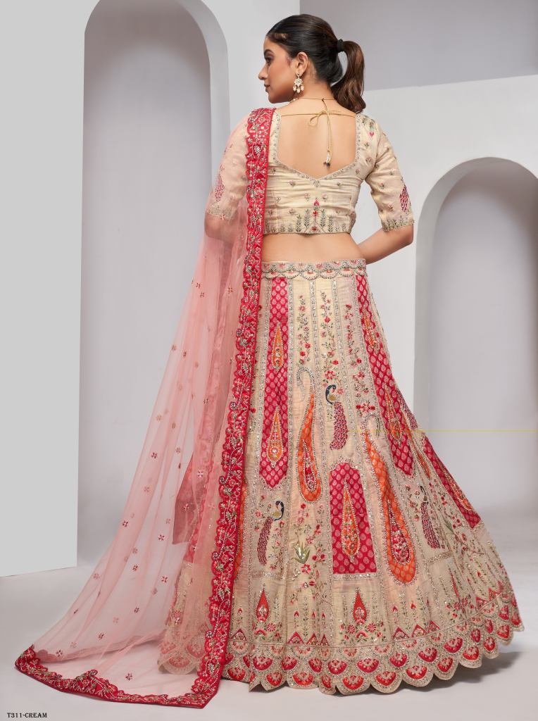 Elegenat Peacock and Paisely motifs Cream Silk color traditional lehenga choli