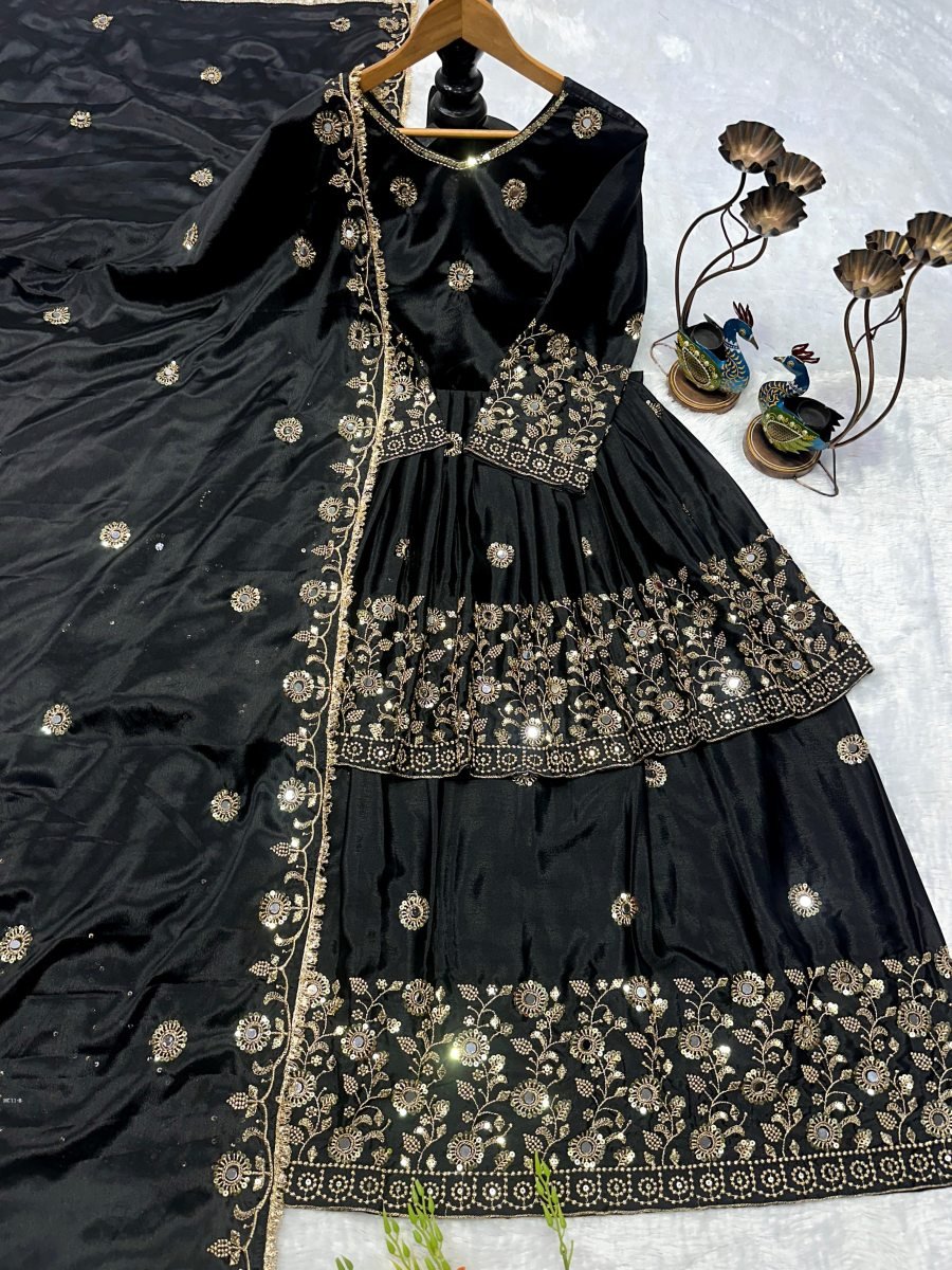 Fabric: Heavy Chinon Silk with heavy embroidery work and real mirror work