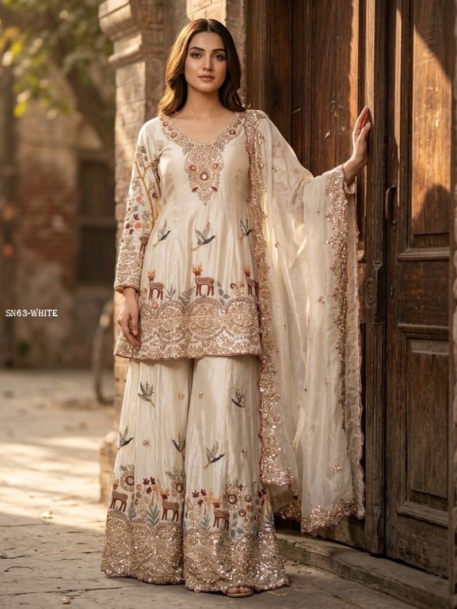 Silk With Embroidery Molty Nidal 5mm Sequences Work With Full-Sleeves