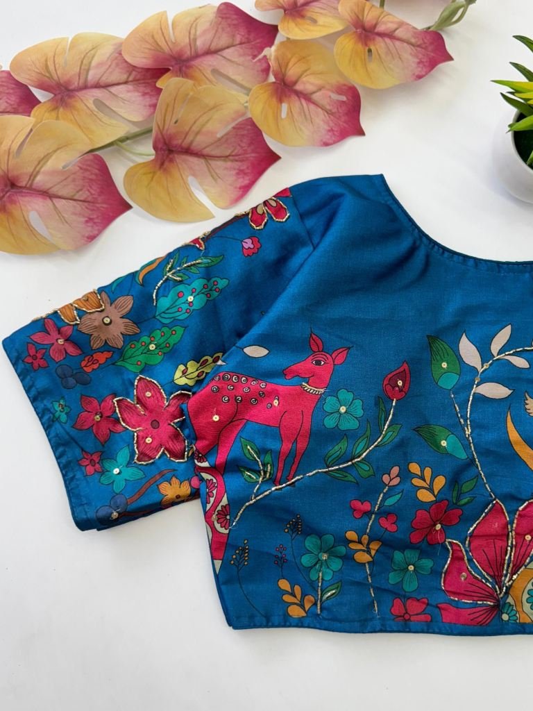Pure Silk fabric With Decent print all over blouse with antique Handcrafted Work