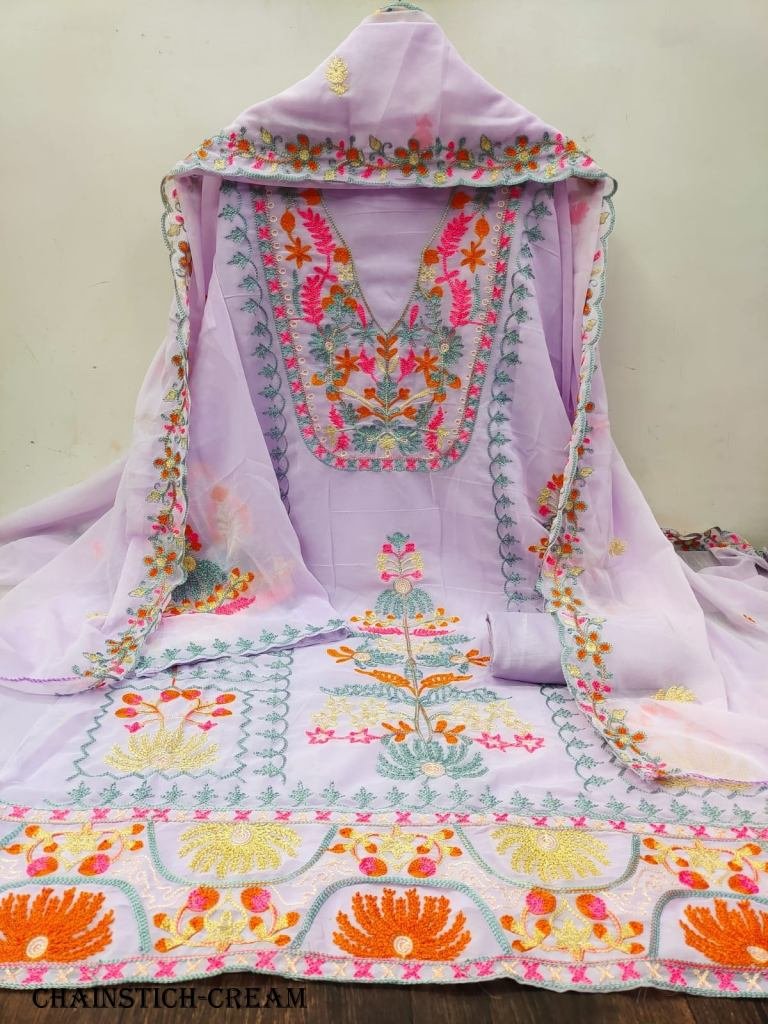 Fabric Details:Top Fabric :- Jorjat - Heavy Chain Stich WorkBottom +inner Fabric :- SantoonDupatta ;- Jorjat Work