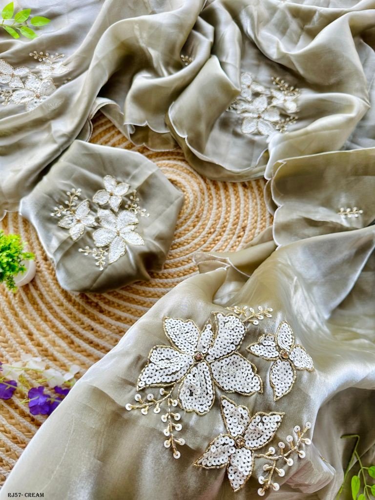 Metallic tissue organza saree with beautiful handcrafted sequence work touch of kardana and running blouse with handwork
