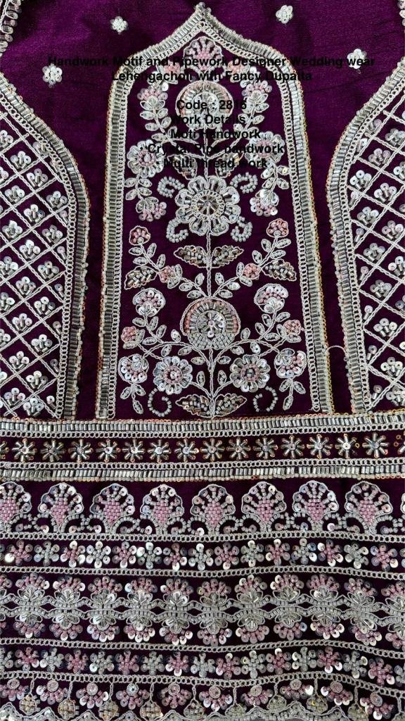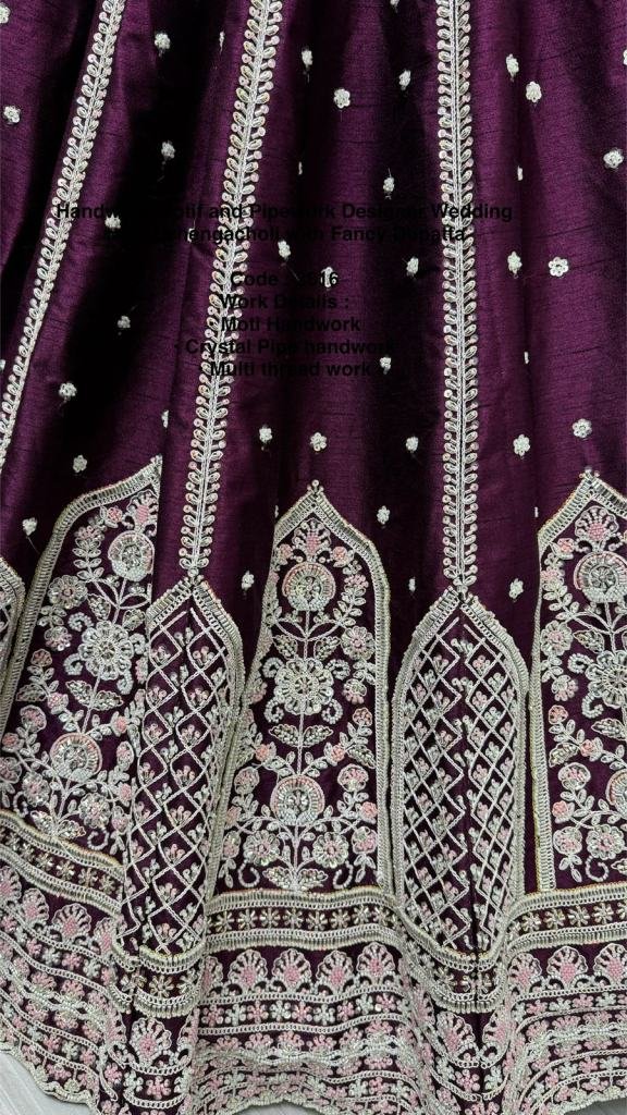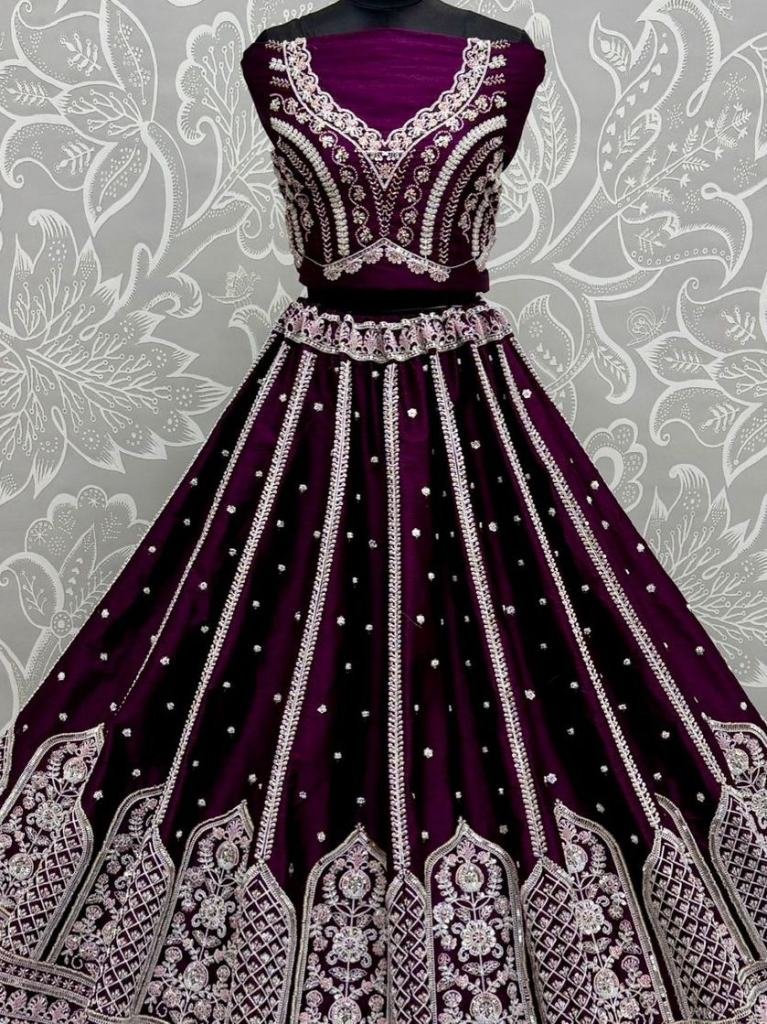 Crystal Pipe Handwork Purple Colour Wedding Lehenga