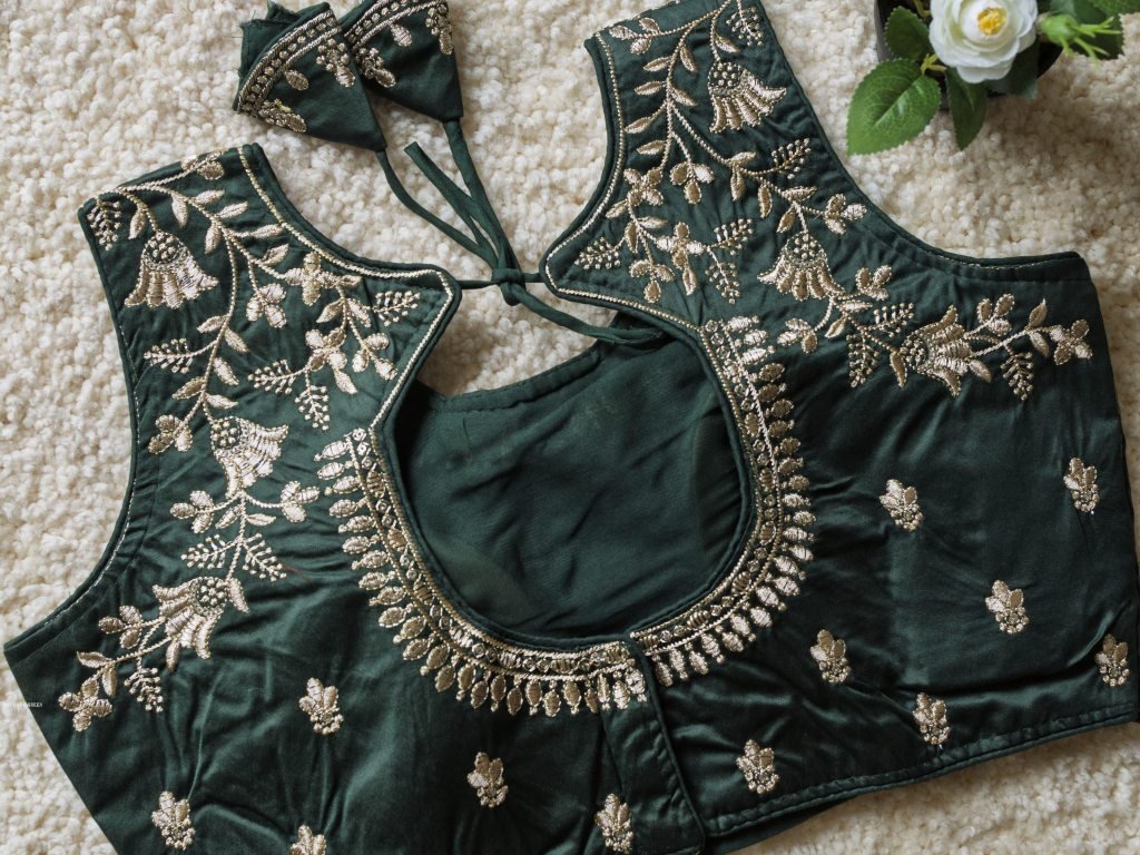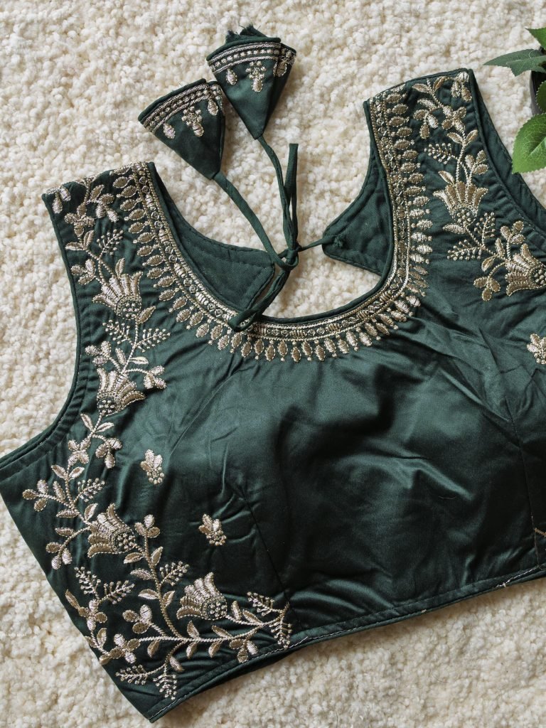 Embroidery With Sequence Touch Up All Over BlouseFabric :-butter SilkSize :-36 Up to 40Sleeves :-attach InsidePad : YesHeight:15inch