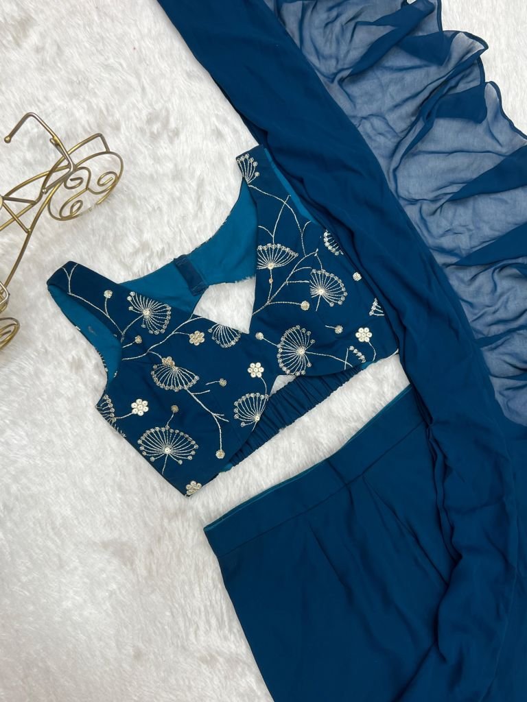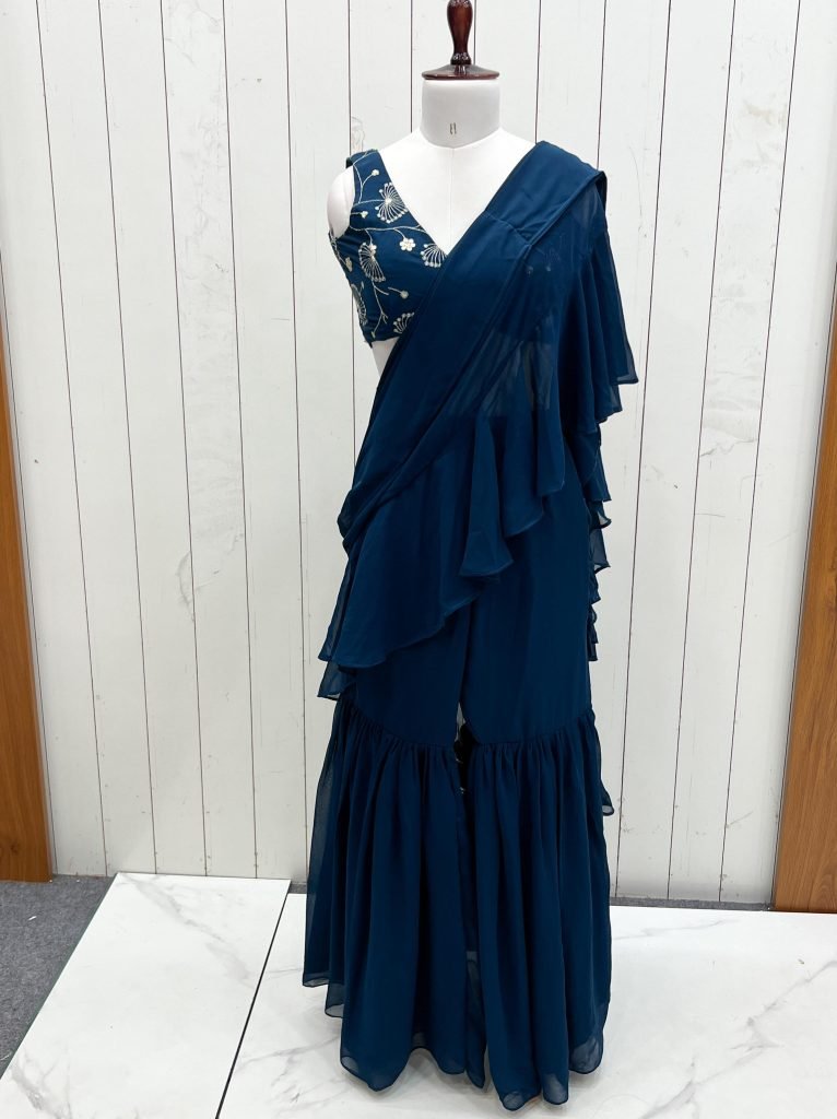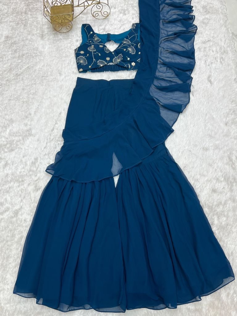 FULLY STTICHED READY TO WEAR SHARARA SAREE,FANCY FULLY STTICHED BLOUSE WITH PADDED FULL SET
