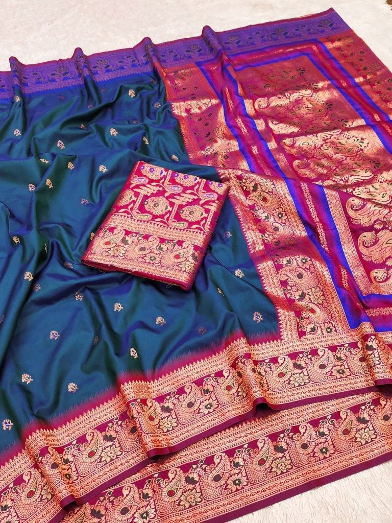 Designer Banarasi Silk Prussian Color Saree and Blouse