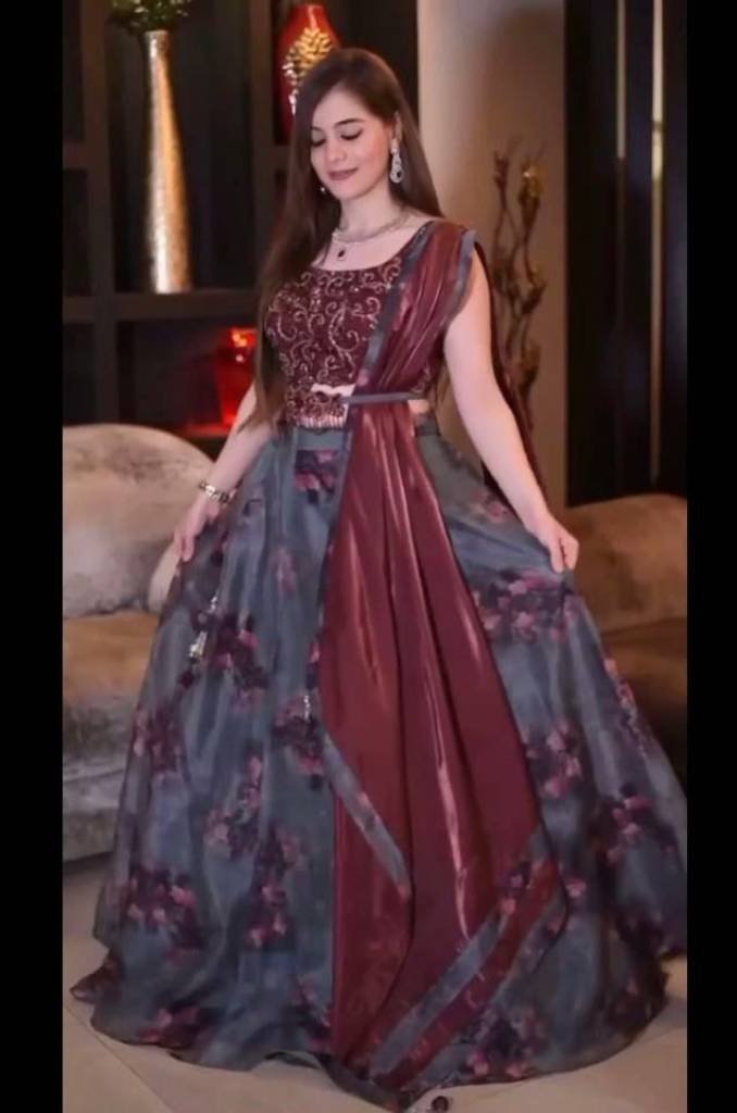BRIDEMATE LOOK ORGANZA DESIGNER WEAR PRINTED LEHENGA CHOLI WITH BLOUSE AND BELT