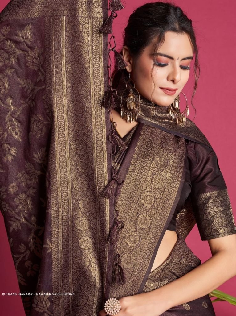 Rutrang -Banarasi Raw Silk saree-Brown