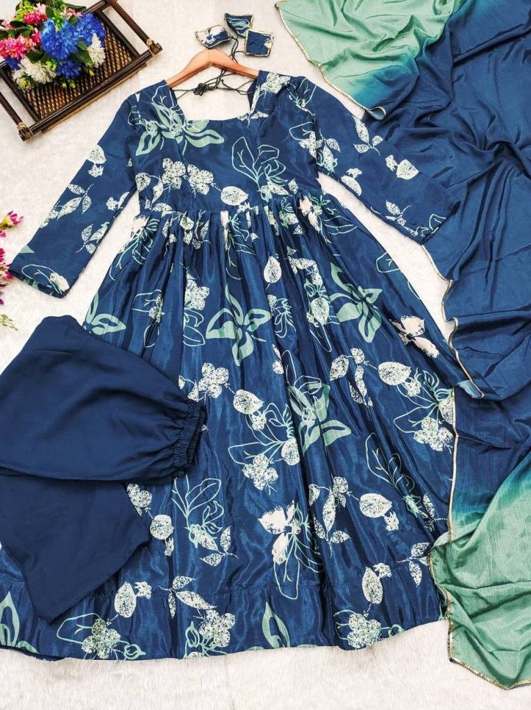 Celebrate the festive season with our stunning blue muslin suit set, featuring a Two shaded dupatta. This elegant ensemble is designed to make you stand out and feel extraordinary at every occasion.