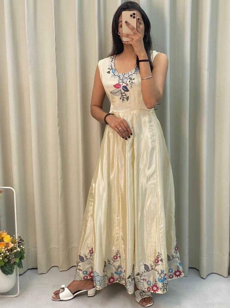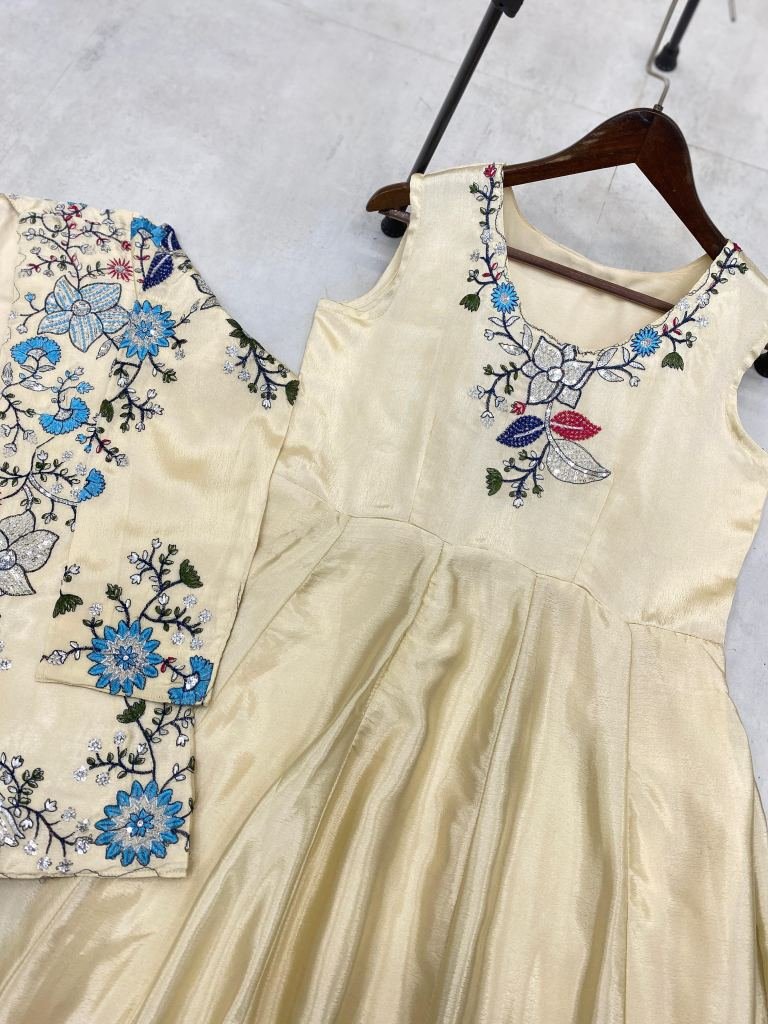 Gown Chinon With Sequence Embroidery Work Full Stitched Free Size