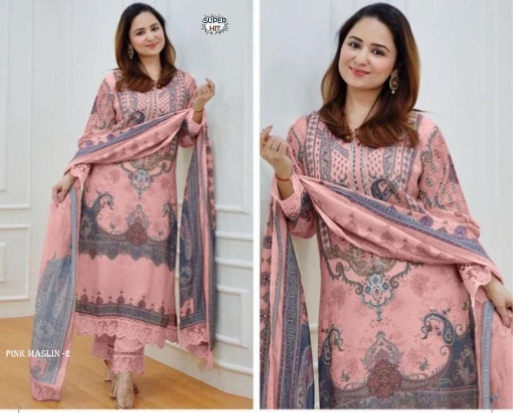 Beautiful printed Maslin kurta set with beautiful lace in neck, Daman and.sleeves with full Sequence Work in kurta