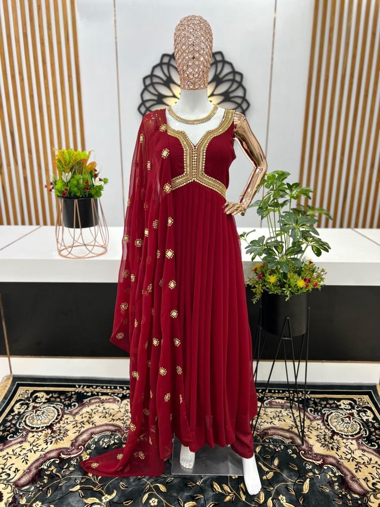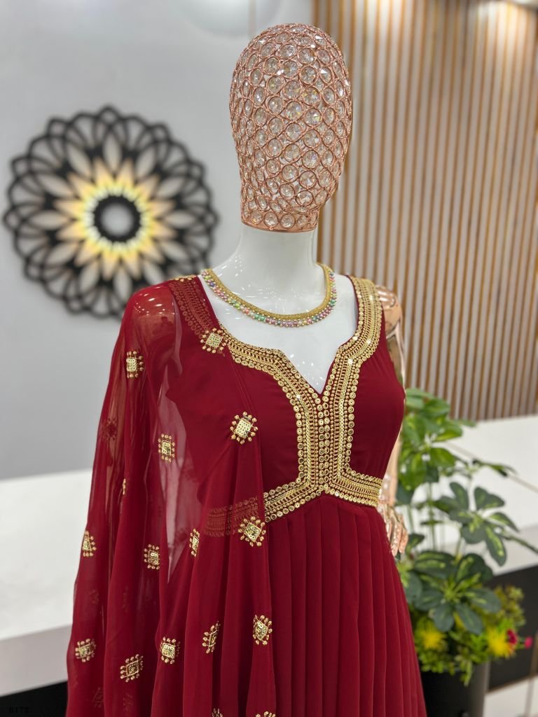Gown Fabric :Faux Georgette With Full Heavy Embroidery Sequence Work With Extra Sleeve Fabric and Attached Pad