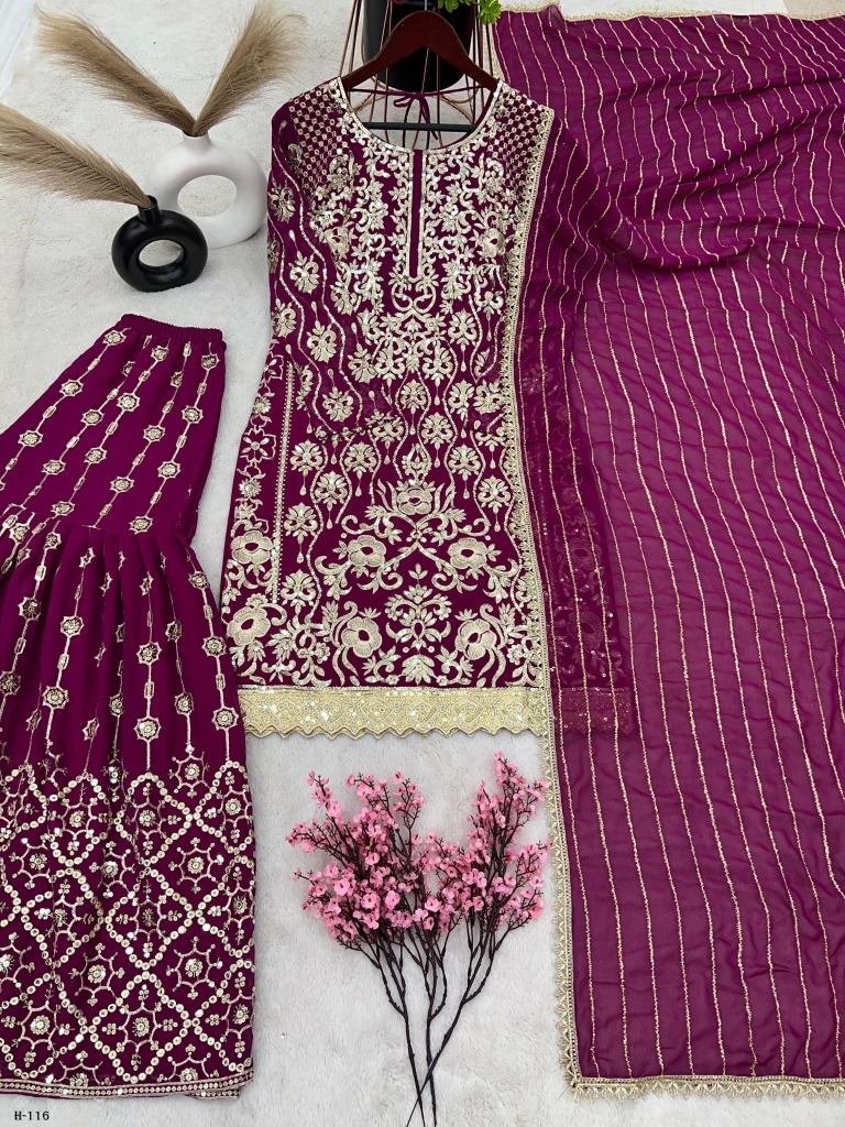 Gharara Fabrics : Heavy Faux Georgette With Heavy Embroidery Work With Flair