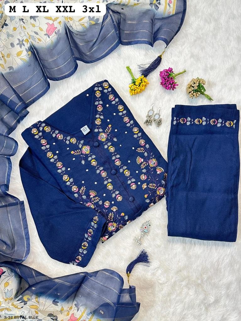 HAND WORK KURTI WITH DUPATTA PANTS SET