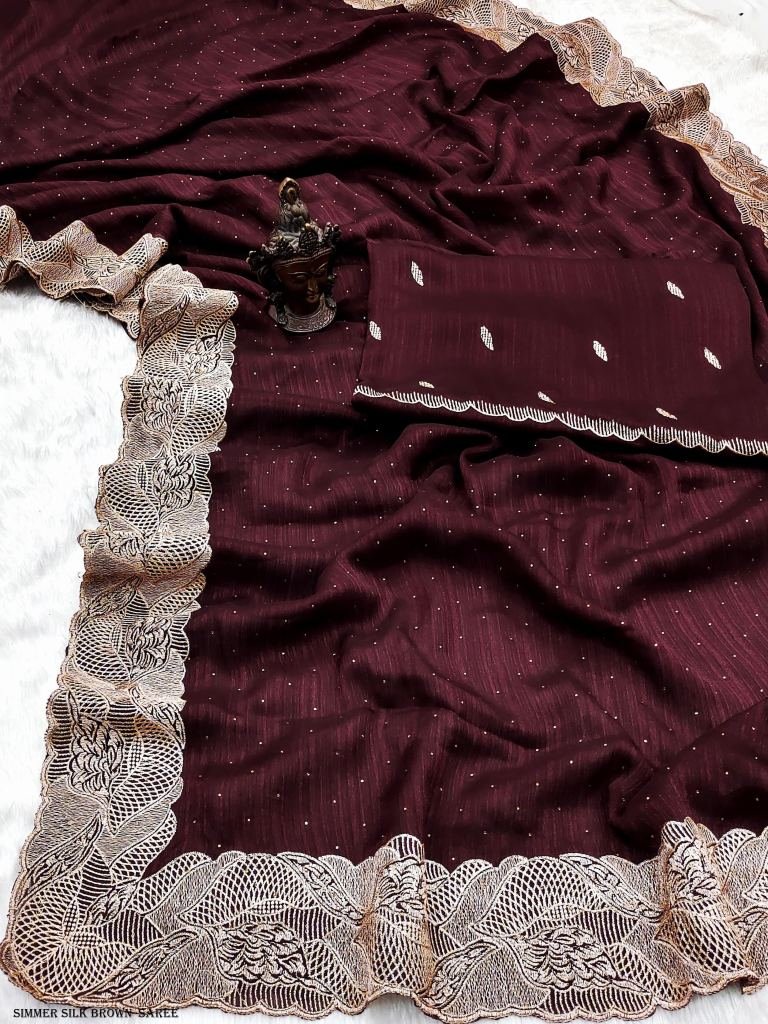 New launch designer saree Fabric- Pure Soft simmer silk Fabric Work- Heavy multistiched Border with fancy buttaBlouse- Running fabric blouse With butti Work
