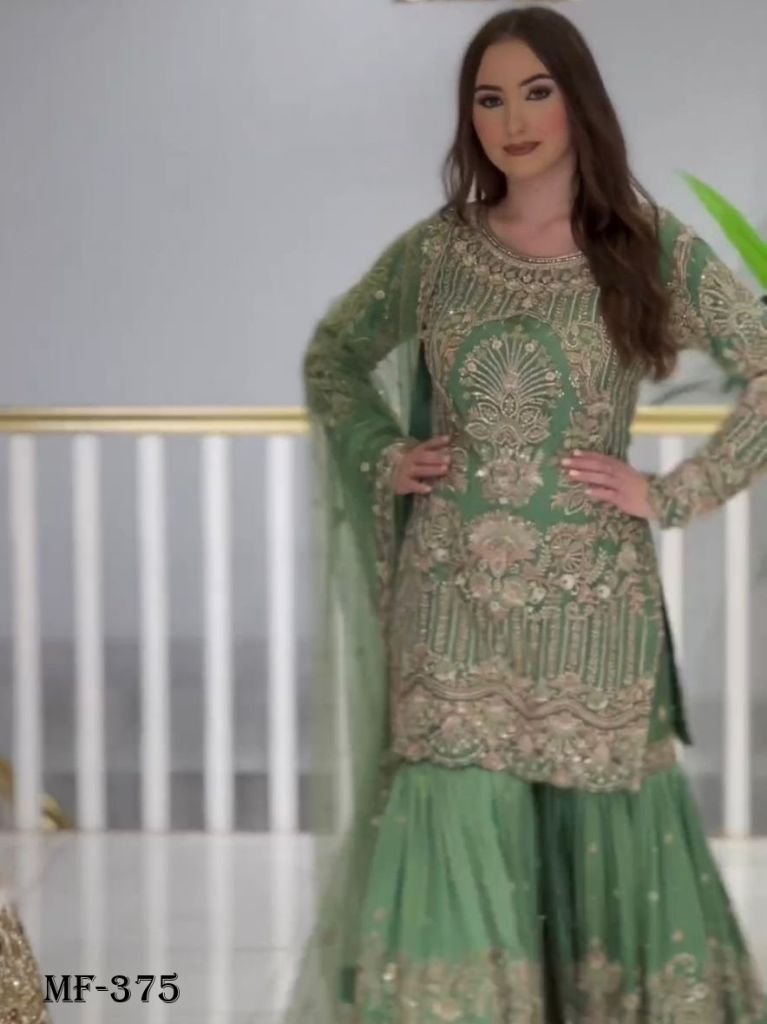 Top Fabric :- Heavy Faux Georgette With Heavy 5mm Sequence Embroidery Multi Needle Work With Full Sleeve With Latkan Dori