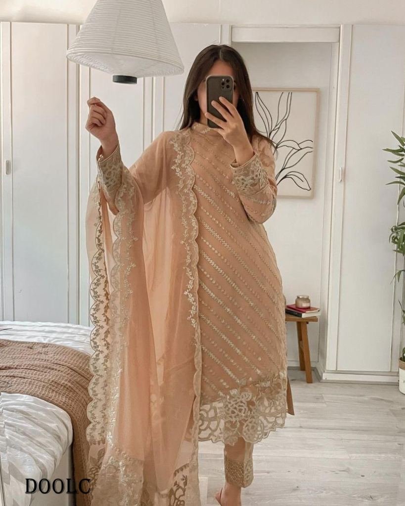kurta:- heavy georgette with beautiful zari embroidery work & cut work (fully stitched)