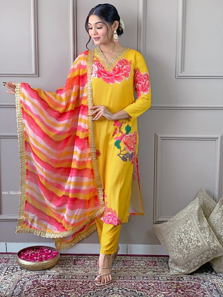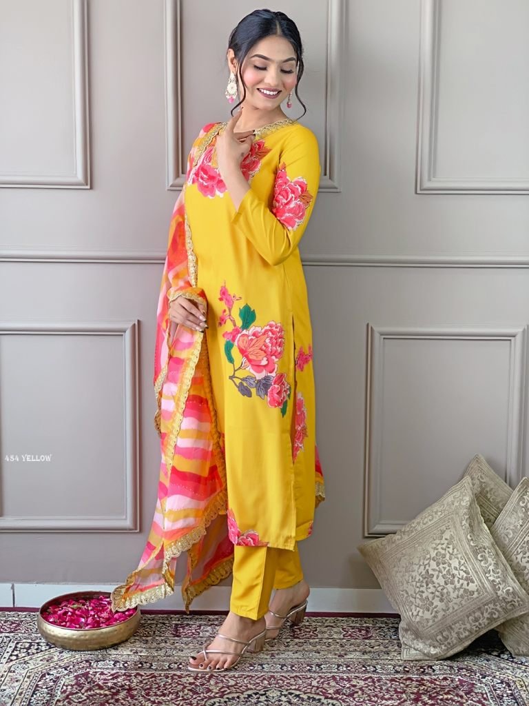 Design : Printed and EmbroideryKurti Fabric : MuslinBottom fabric : RayonDupatta : OrganzaPack : Kurti Pant Dupatta SetKurti Size :S(36), M(38), L(40), XL(42), XXL(44)Length : 44