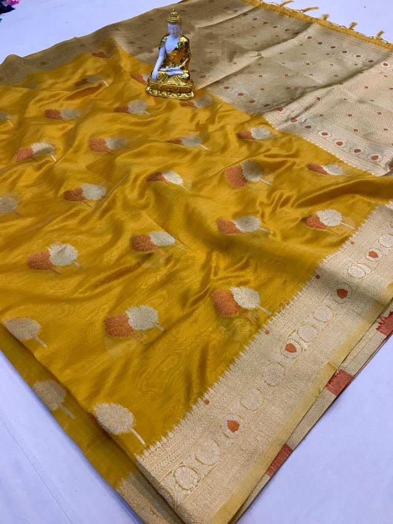 Fabric :- Organza SilkZari :- Weaving Zari WorkSaree Length :- 5.5Blouse Length :- 0.8