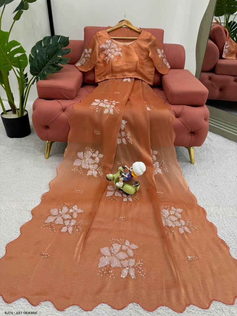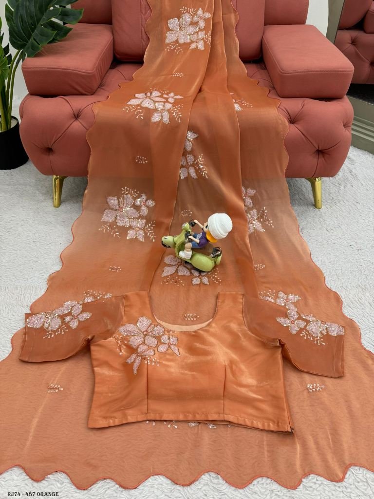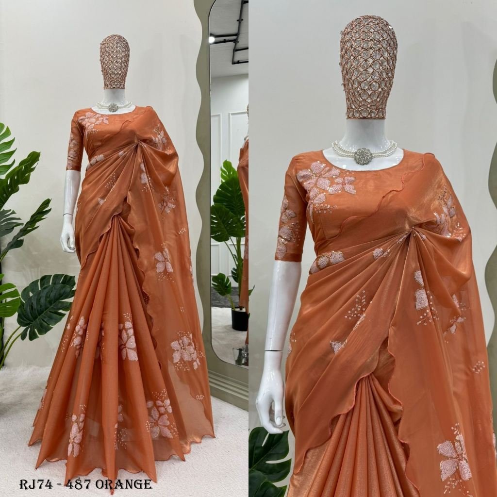 Looking for someone with the same color as the beautiful Designer Saree on Jimmy chu Fabric with Thread & Sequins work and Blouse on Jimmy Chu Fabric With Thread & Sequins work.