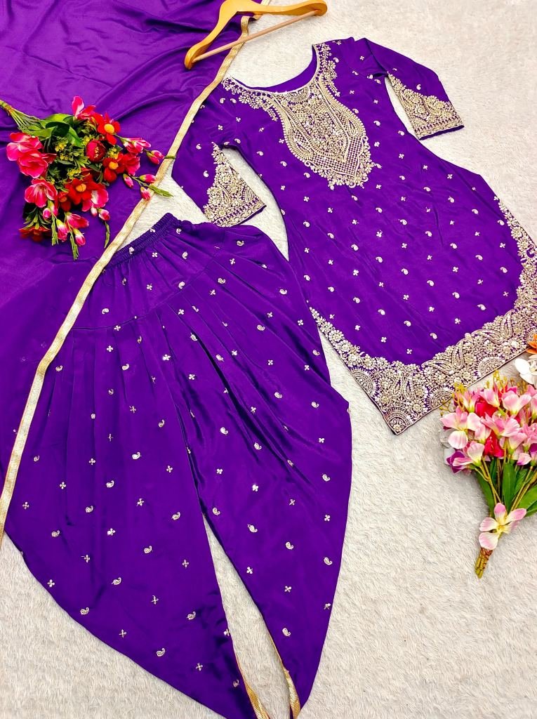 Dhoti Fabrics :Pure Cinon Silk With 5mm Siqwans Embroidery Work With Elastic Rubber
