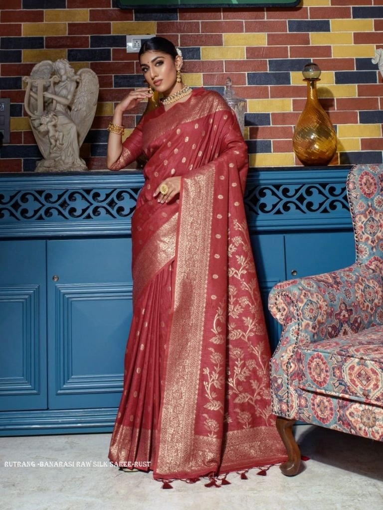 Fabric :Banarasi Raw Silk saree with all over zari weaving pattern and zari border with fancy tassels and running blouse piece