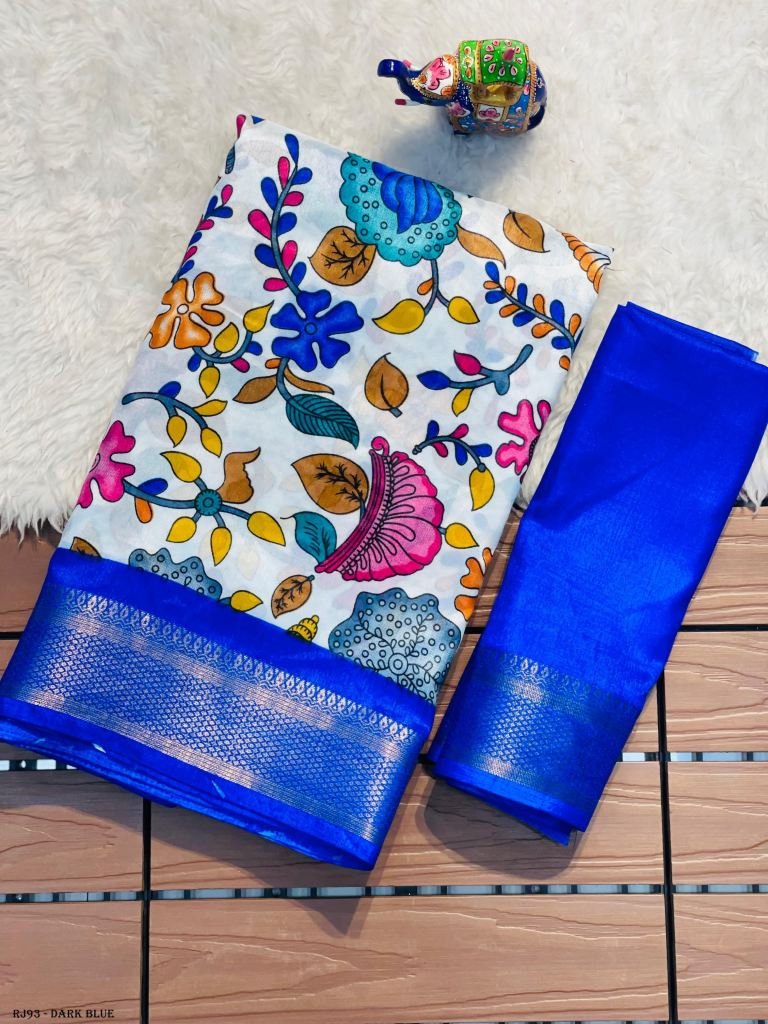 Very Exclusive Handloom Silk Called Kanchi Border Dola Silk Fabric With Kalamkari Printing Sarees With Zari Weaving Pattu Border With Jari Chex Pallu & Attached Blouse