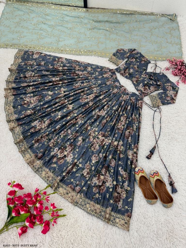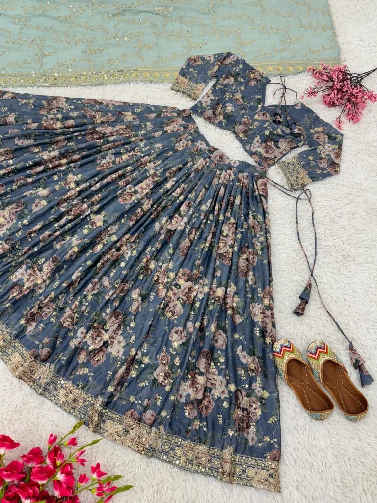 Lehenga Fabric :Heavy Chinon Silk With Digital Print and Heavy Embroidery Sequence Work With Latkan Dori