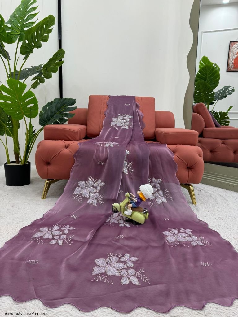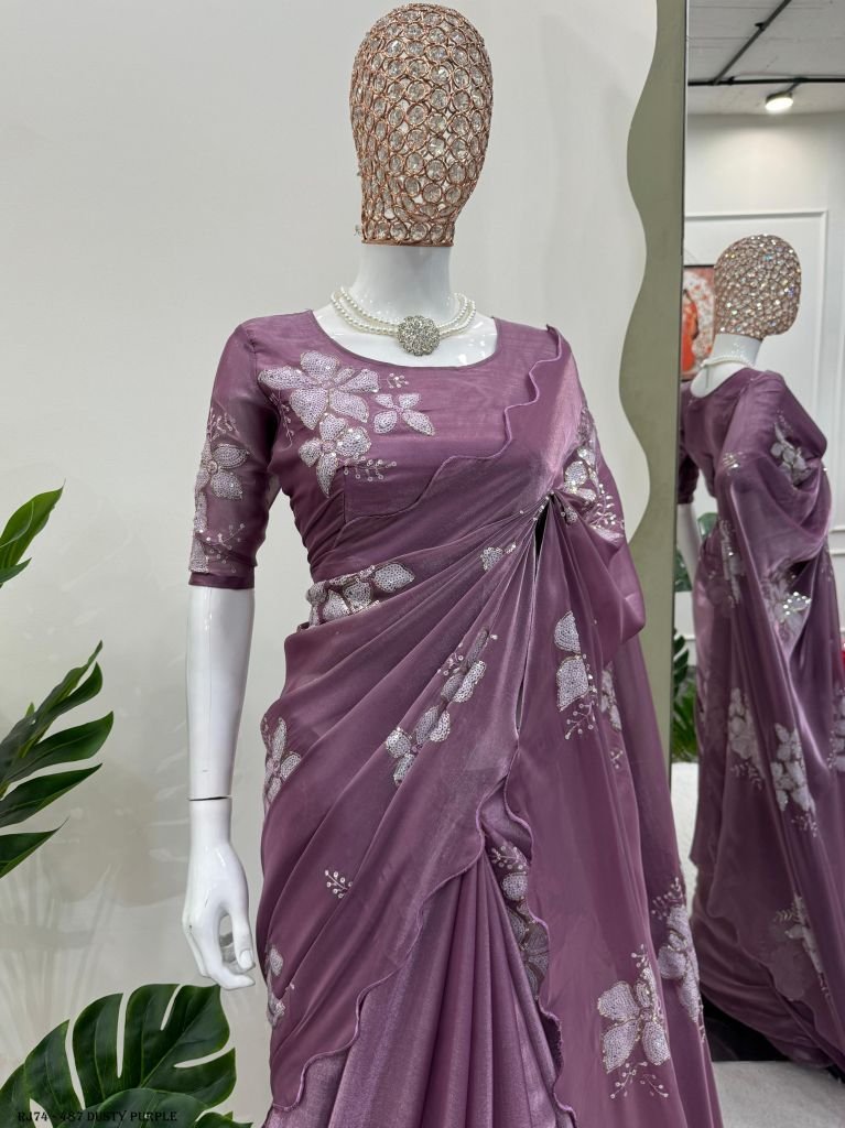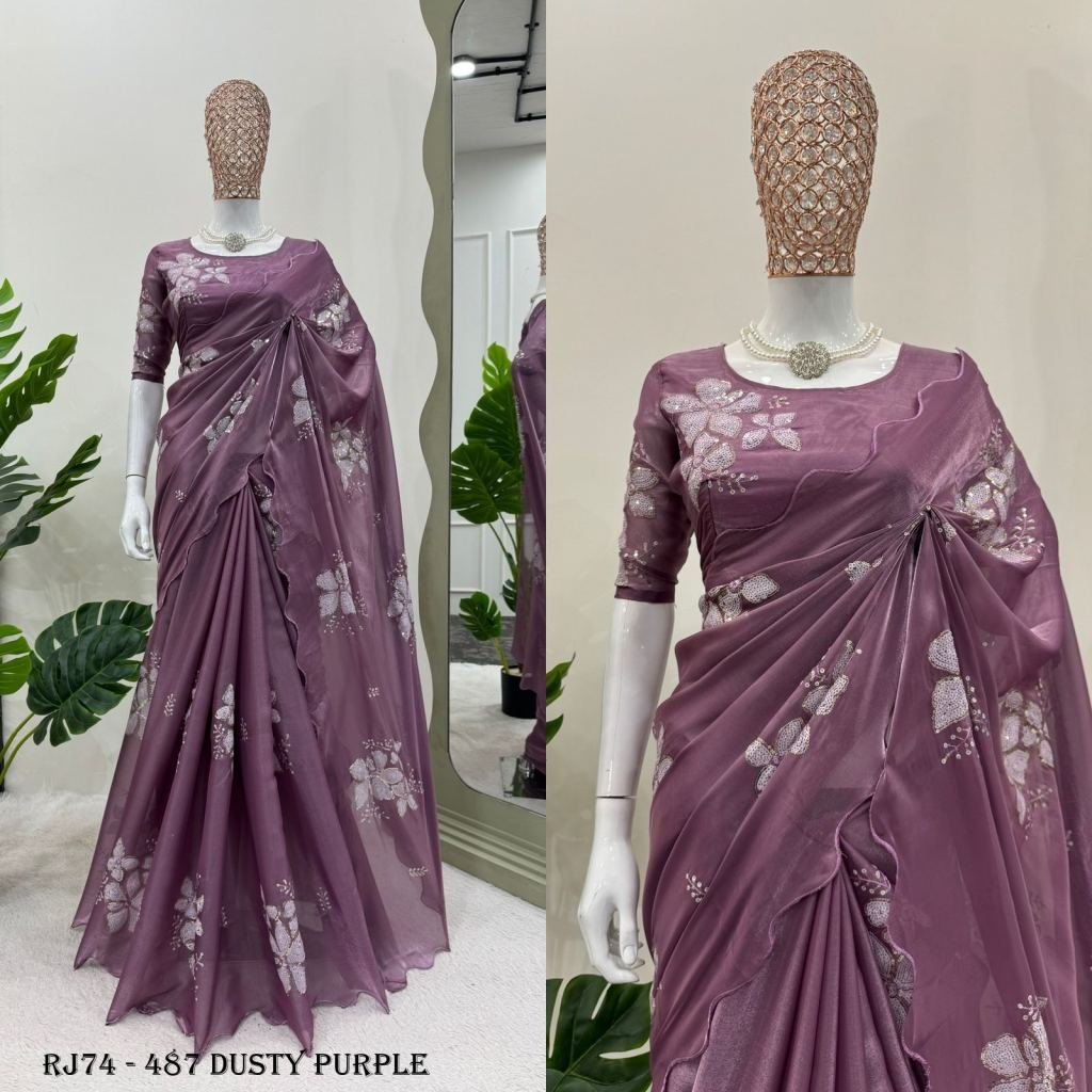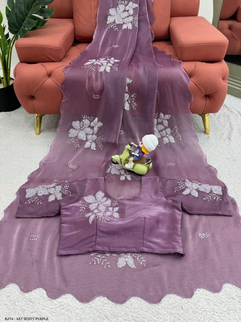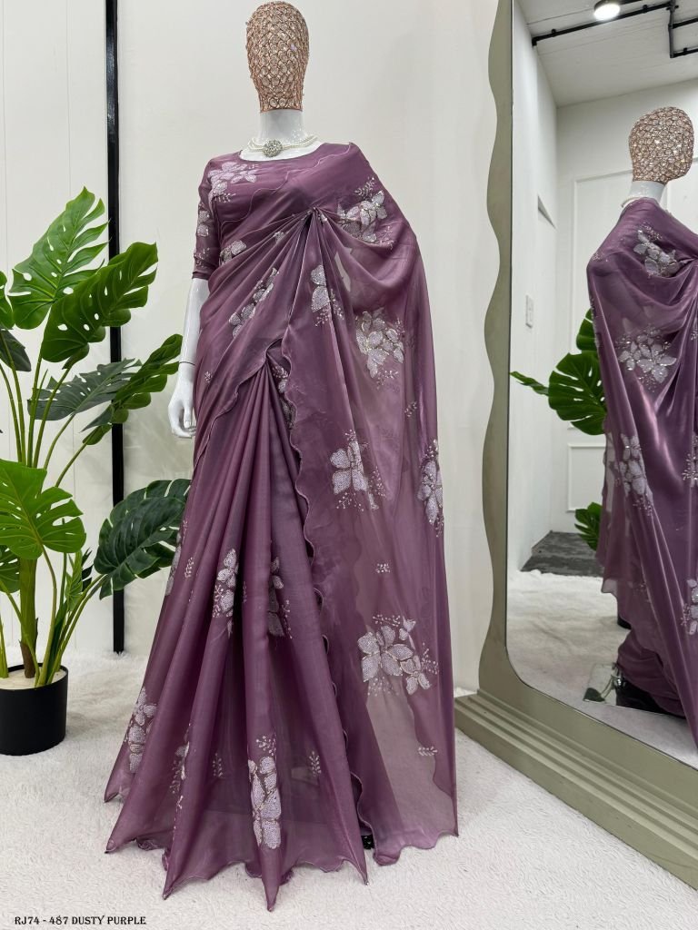 Looking for someone with the same color as the beautiful Designer Saree on Jimmy chu Fabric with Thread & Sequins work and Blouse on Jimmy Chu Fabric With Thread & Sequins work.