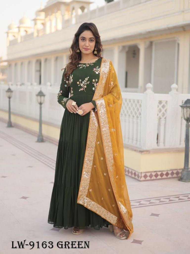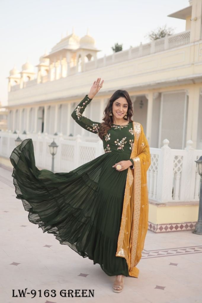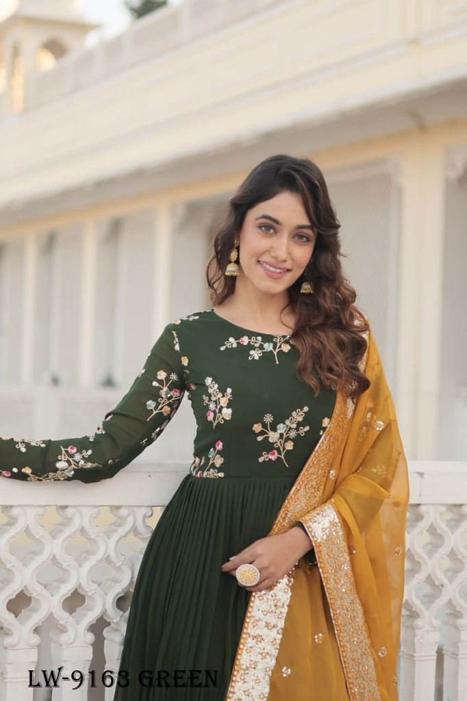 Gown fabrics and Work :- Faux Georgette with Embroidered and Multi-Sequins work