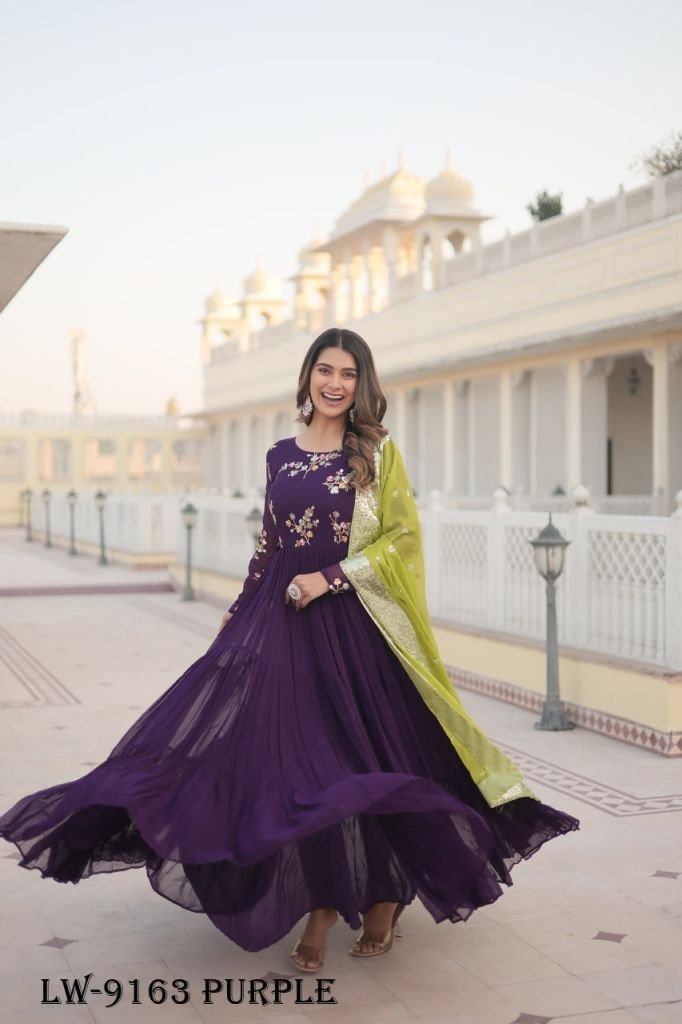 Gown fabrics and Work :- Faux Georgette with Embroidered and Multi-Sequins work