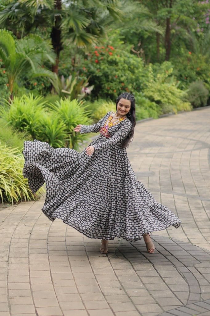 Fabrics & Work :- Printed Cotton With Kutchi Gamthi Work And Kodi Lace.