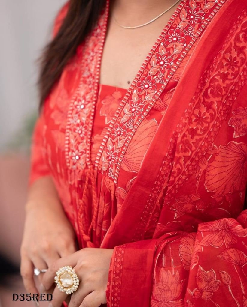 This A-line pant set is perfect for the summer season with its vibrant floral print and confident pocket one side. Plus, the included matching dupatta completes the look and adds an extra touch of style