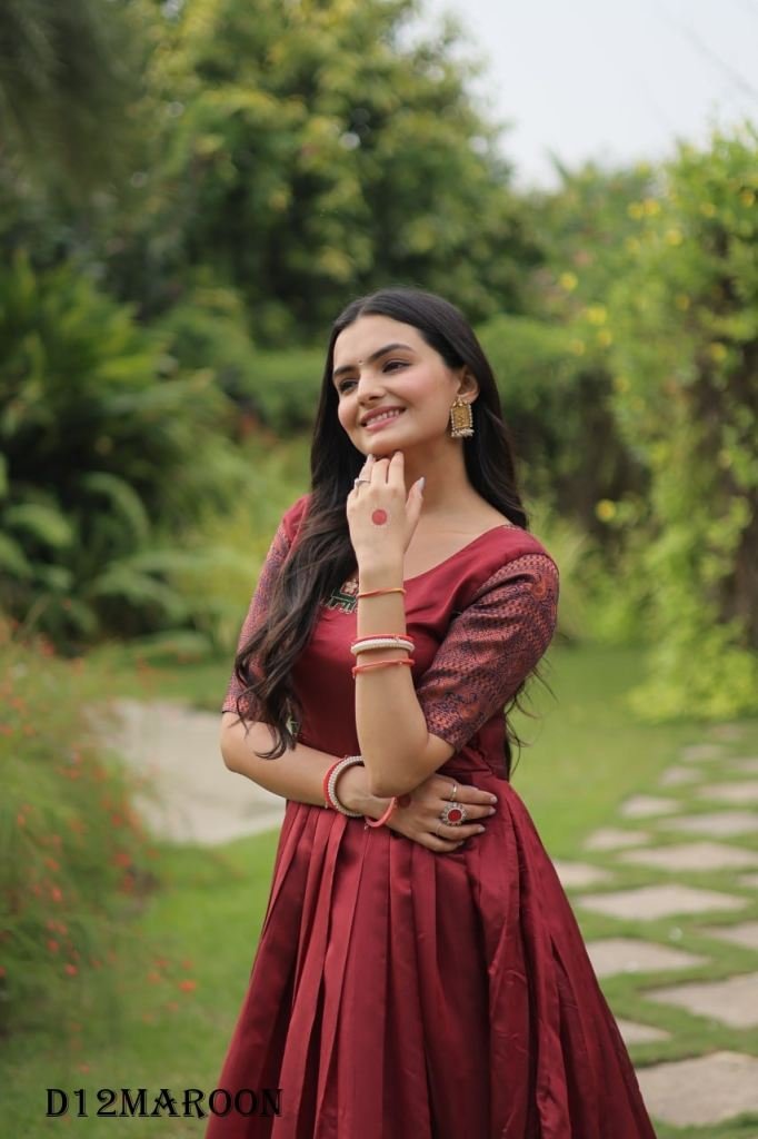 Silk Gown And simple weave with a sharp hand, Jacquard fabric is a highly textured fabric with patterns that are woven, rather than printed into the fabric, And it gives adorable loos to woman who deeply think in cloth what is to choose.